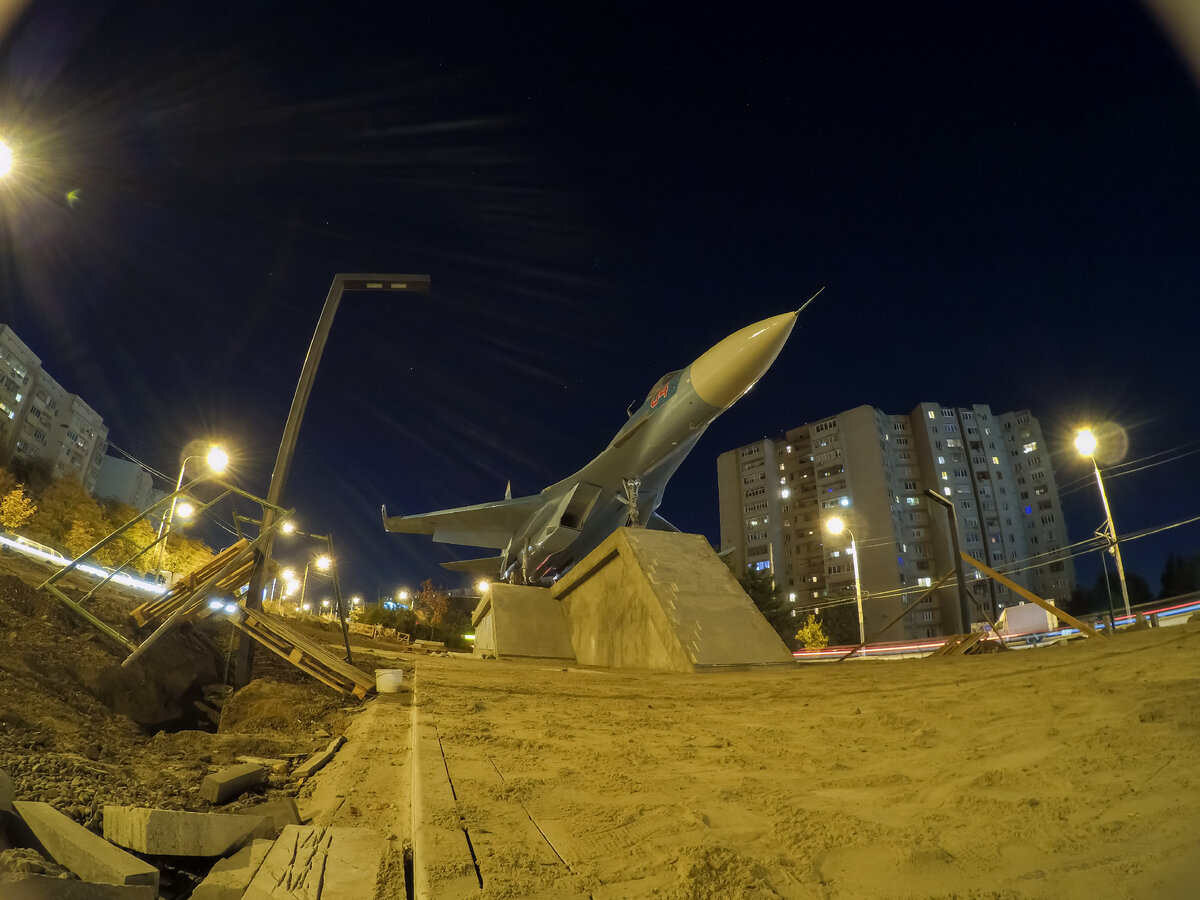 в районе Военвед. Памятник авиаторам всех поколений открыли к юбилею 4-й Краснознаменной армии военно-воздушных сил и противовоздушной обороны. Она была создана из авиационных сил Южного фронта в 1942 году. Ее летчики принимали участие в освобождении Ставрополья, Кубани, Крыма, Белоруссии, Польши и в битве за Берлин. Су-27 установлен на каменном постаменте. Практически на каждой стороне имеются специальные таблички. На переднем плане виднеется