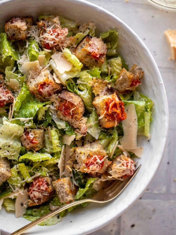 Салат Цезарь — это классический рецепт салата, который понравится всем, кто любит сочетание сочной зелени, свежего овощей, нежного соуса и хрустящих крутонов. Вот как приготовить салат Цезарь: Ингредиенты: - 1 головка Романо салата или кочан салата кромсатор - 2 куриных грудки - 200 гр хлеба (или багета) - 1 яичный желток - 3 зубчика чеснока - ½ стакана растительного масла - 2 столовые ложки оливкового масла - 1 ст.л. лимонного сока - 1 ст.л. горчицы - 2 ст.л. тертого пармезана - соль и свежемолотый черный перец Приготовление: 1. Куриные грудки разрежется на тонкие кусочки, посолите и поперчите их. Обжаривайте в сковороде с маслом до золотистой корочки. 2. Выньте грудки из сковороды и нарежьте их на средние куски. 3. Для приготовления соуса цезарь смешайте желток и чеснок, добавьте горчицу, лимонный сок и пармезан. Взбейте все венчиком и постепенно вливайте растительное масло. Должен получиться густой, но не жирный соус. 4. Обжарьте на кусочки нарезанный хлеб или багет в оливко