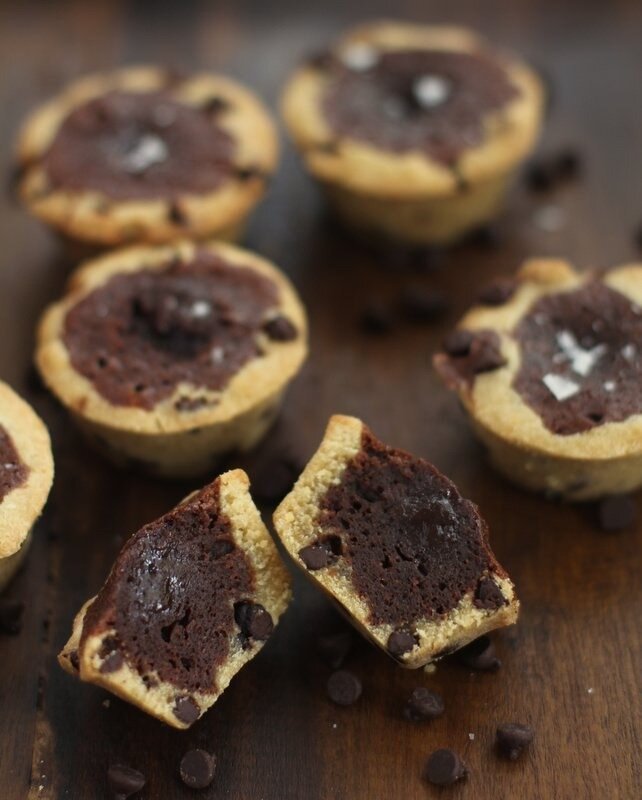 Ингредиенты Песочная основа: 5 ст. л. размягченного сливочного масла ¼ стакана коричневого сахара 1 яичный желток ½ стакана+1 ст. л. муки Небольшая щепотка соли ⅓ стакана шоколадных капель Начинка: 6 ст. л. сливочного масла ½ стакана сахара ¼ стакана какао 1 большое яйцо ¼ ч. л. ванильного экстракта 3 ст. л. муки Приготовление Разогрейте духовку до 160°C. Смажьте формочки для маффинов. В небольшой миске взбейте вместе масло и сахар. Добавьте яичный желток и перемешайте. Добавьте муку и соль, перемешайте. Добавьте шоколадные капли. Поставьте миску в холодильник. Для начинки нагрейте масло на плите или в микроволновой печи, пока оно не растает. Добавьте сахар и какао, перемешайте до получения однородной массы. отложите на 5 минут. Потом добавьте яйцо и ванильный экстракт, снова перемешайте. Теперь добавьте муку и размешайте до получения однородной массы. Разделите песочное тесто между 12 формочками (около 2 ч. л. в каждую) и придавите ко дну. Вылейте начинку в каждую формочку. Выпека