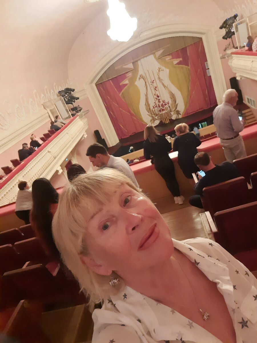 Вчера ходили на "Сильву". Давно я не видела, чтобы на входе спрашивали лишние билетики. Нас спросили дважды. И у кассы стояла очередь, но билетов не продавали. Зал и правда был полон. Хотя зал не очень и большой там. Я ожидала большего от Театра внутри. Уж очень он снаружи впечатляет. Но на самом деле внутри не так уж и просторно. Первый этаж - гардероб. На втором этаже находится всё остальное. Зал, два фойе, буфет, туалет. На третьем этаже- выход на балконы. Это небольшое фойе более интересное. Там есть шкафы с экспонатами. В антракте с удовольствием всё рассмотрела. И там же (по другой стене) галерея бюстов известных композиторов, имеющих отношение к оперетте. В антракте мы и на балконы поднялись. Оттуда зал лучше смотрится. Конечно театр построен давно и поэтому комфорт там минимальный. Мне было душновато. И очень маленький наклон пола в зале. Нам с Ларисой не повезло. Перед нами сели женщины с прическами пышными. Ох уж эти химические кудри! Они мне всю сцену закрыли.
