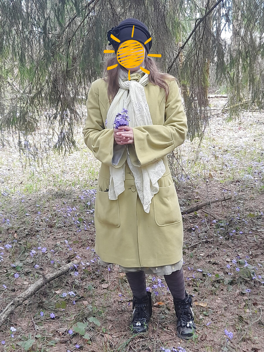 Настроение нужно повышать даже если не хочется. Да😁 Причиняем добро и наносим радость, даже себе. Решили сегодня наконец-то выехать в магазин, а дальше как пойдет. Выехали. Первую половину дня то слабость, то жарко, то холодно и кашель, чуть только в магазин зайду. Но к вечеру полегчало. Решила сегодня обновить секондовский наряд. Ну как секондовский. Пальто и шляпа оттуда, ботинки с алика, шарф и юбку отдали. Я так укутана в шарф (и шаль там еще под пальто), потому что ворот открытый, а я за грудь боюсь. Причем мы выезжали было прохладно. Я даж кофту под пальто надевала (пальто шерсть с чем то), а потом резко пожарело. Завтра за 20 градусов обещают. В ботинках тоже резко стало жарко. Хорошо мы недалеко уехали. Переобулась. Надела новые свои кеды. Они классные, хотя в них тоже жарко (поэтому ношу обычно либо туфли либо мягкие кроссовки в такую погоду, но красота требует жертв, как говорится). И ноги натерла. Но они прелесть. Так что терплю🙃 Собрала все возможные комплименты. Да, име