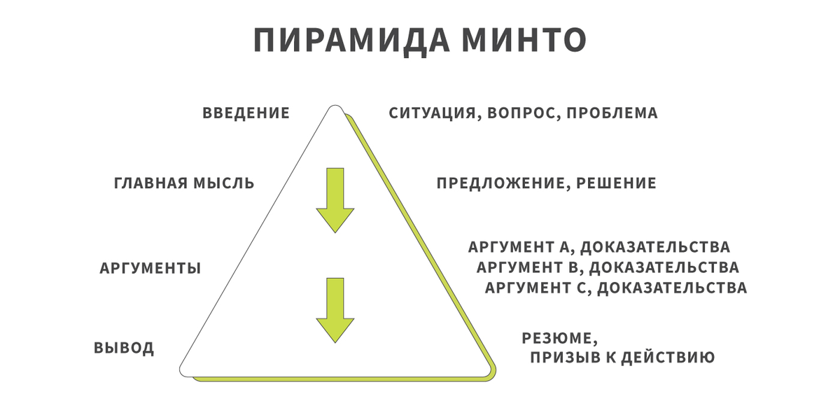 Пирамиды рассмотренные в предыдущих моих статьях известны широкому кругу людей. Есть еще одна, "ПИРАМИДА МИНТО", к её названию приложила руку (голову) одна дама. Звали её Барбара Минто. Чем занимаются женщины, как вы думаете? Да! Они сочиняют правила! В 1966 году её направили в Лондон развивать письменные навыки работников одной компании. И понеслось! Там и начала формироваться её теория. Уже через 10 лет Барбара - управляющая собственной компанией и успешный преподаватель в школах Гарварда и Стэнфорда. Бизнес школ, надо заметить! Принципы своей пирамиды она опубликовала в книге и назвала ЗОЛОТЫМИ ПРАВИЛАМИ МЫШЛЕНИЯ, делового письма и устных выступлений. Звучит? В чем же смысл и почему пирамида? Б.Минто выдвинула теорию, что идеи делового документа должны быть не только логически связаны, но и выстроены по принципу пирамиды. Эта структура повествования обеспечивает максимальную доступность для понимания и восприятия- так удобно нашему мозгу! Ясное и правильное изложение своих мысл