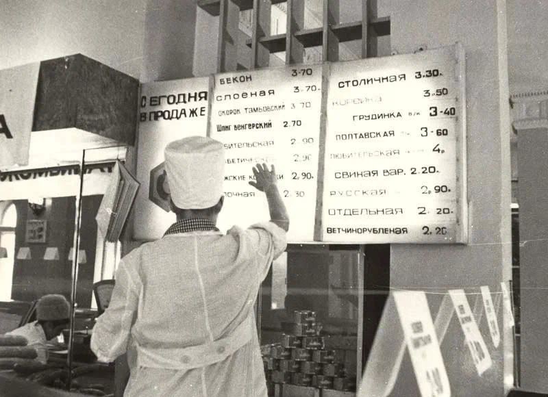 А с колбасой было не так, поскольку колбаска была продуктом высокой переработки. То есть мясо мясокомбинатов перерабатывали колбасные заводы и по ГОСТУ они не могли класть всякую ерунду для удешевления. Поэтому на выходе себестоимость вареной колбасы составляла 5 рублей и она не входила в список главных продуктов советского человека по сниженной цене, продавалась дороже.