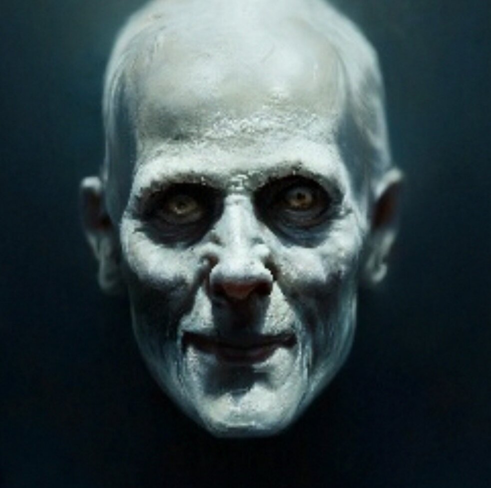 Послышался хруст костей. Медленно тело обернулось. Лицо отчима казалось застывшим, не живым. Выглядело оно так, будто вылито из воска. Его перекосила странная бесчувственная улыбка.