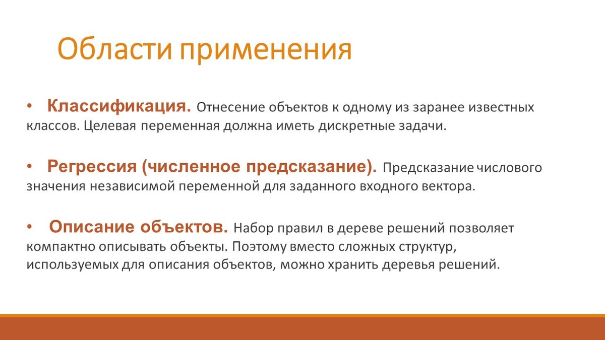 В материале [https://dzen.ru/media/id/603a418d1684900aa2499416/derevia-v-teorii-grafov-643429ad5951555cfa818180] приведено краткое определение деревьев как графов без циклов. В текущем материале приведём одно из применений такого объекта как дерево для такой области, как принятие решений. Цель практической работы: Изучить алгоритм «Построение дерева решений» и научиться обрабатывать с его помощью данные в Deductor Studio. Теория Дерево решений - это графическое изображение процесса принятия решений, в котором отражены альтернативные решения, соответствующие вероятности, и выигрыши для любых комбинаций альтернатив. Оно является прекрасным инструментом в системах поддержки принятия решений, интеллектуального анализа данных и других областях. Основные этапы построения дерева решений: 1. Выбрать атрибут для осуществления разбиения в данном узле. 2. Определить критерий остановки обучения. 3. Выбрать метод отсечения ветвей. 4. Оценить точность построенного дерева. Преимущества деревьев прин