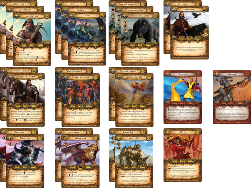 Всем привет! Сегодня мы рассмотрим колоду, которой с нами поделились администраторы официального сайта Берсерка. Ей является МоноСтепная колода на Бронтобее. Колода уже на первый взгляд кажется довольно сильной и перспективной и сейчас мы расскажем почему же так считаем. Итак основная особенность нашей колоды в большой мобильности, так как у большинства существ движение 2. Также при помощи смотрителя стойл мы можем увеличить это движение до 3. Первый ряд у нас займут непосредственно Бронтобей и Минотавр. Оба с мобильные, оба с большой атакой и большим количеством жизней. Направленный удар Бронтобея позволит не опасаться защитников оппонента при добивании закрытых существ, а опыт в атаке 2 позволит расправиться с открытыми. Минотавр помимо брони 2 и достаточно большой жизни имеет хорошую атаку и возможность проатаковать дважды, не оставляя противнику и шанса. Задние ряды у нас займут Хозяйка прайда и Ойуун, усиливая наш первый ряд, позволяя им открываться, снова двигаться (Бронтобей эт