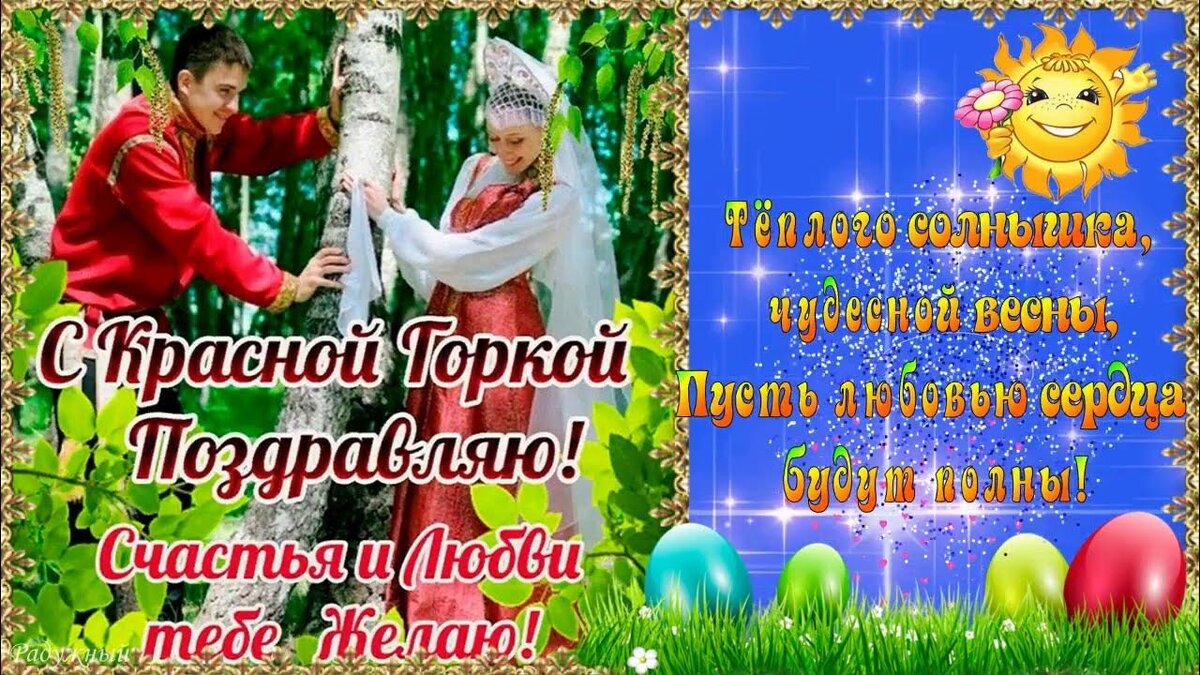 Сегодня многие услышали поздравления с праздником, а какой? Слышала лично я в ответ. Вот решила рассказать и вам. Красная горка, ещё ее называют "Антипасха" ( что скорее церковное название, от греческого "вместо", можно перевести как "подобная Пасхе"), так же ещё "Фомино воскресенье" (в память об апостоле Фоме, прозванного неверующим. Среди апостолов не было Фомы, тот не поверил в рассказы о чуде Христовом. И спустя 8 дней Христос явился вновь, показал Фоме свои раны и предложил их ощупать. После этого Фома уверовал в воскресение и признал учителя.) История этого праздника уходит "корнями" в прошлое дохристианской Руси. Наши предки язычники отдавали холмам и пригоркам особую роль - оборудовали храмы-капища и приносили жертвы богам, отсюда и название. Праздник посвящен весне и имеет увеселительный характер. Весна и лето- любимые времена года молодежи, когда можно водить было хороводы, плести венки, играть в игры. С приходом на Русь праздник усилил свое значение, так как совпадал с оконч