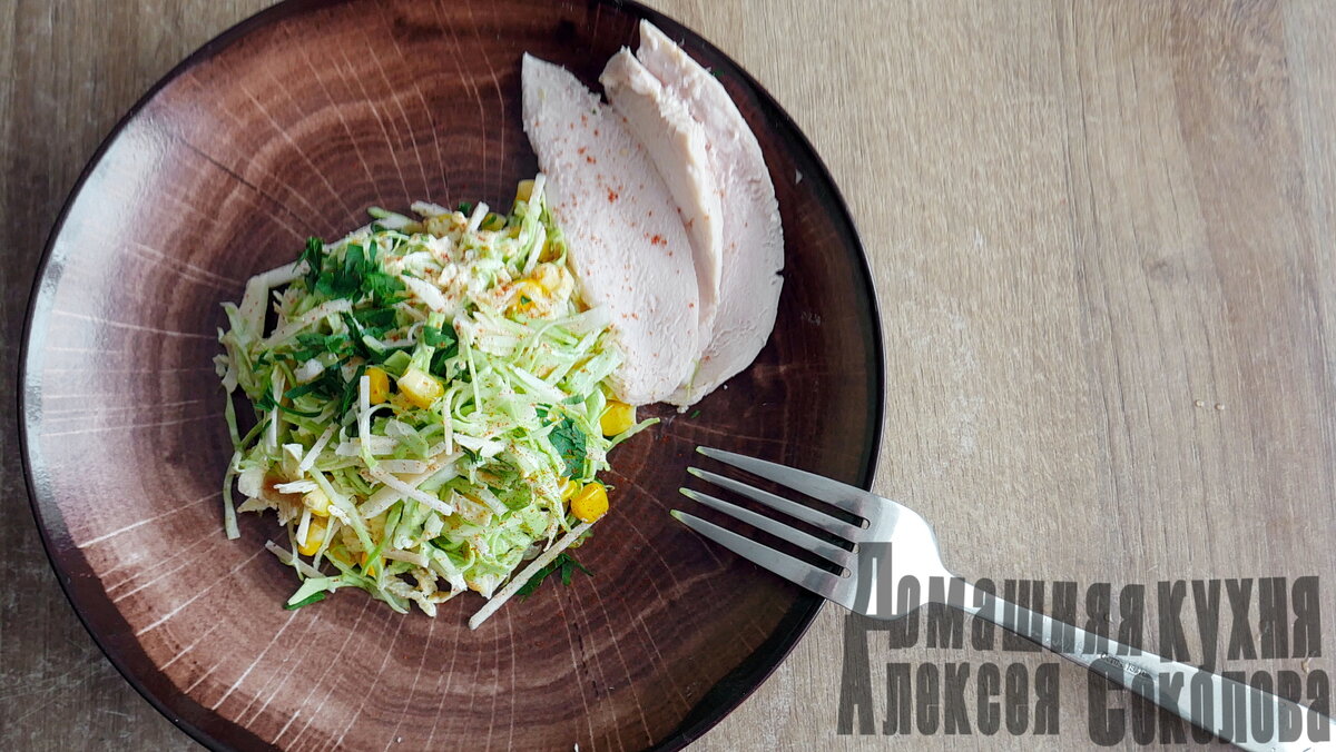 Легкий весенний салат с грудкой индейки или курицы. Домашняя кухня Елены Соколовой