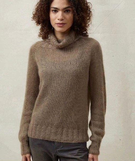 Возможно, свитер сегодня вязать совсем не по погоде. Но пройти мимо этой модели не смогла. Она же тонкая, тёплая и невесомая — из кидмохера с шёлком. Кроме того, друзья — модель с ростком (азиатским), а это большая редкость в связанном за границей свитере. Свитер из кидмохера Как выглядит Вязание свитера начинается от воротника, затем связаны рукава поворотными рядами, и последней по кругу выполнена основная часть — тело. Размеры Есть расчёты для размеров S (M) L (XL). Сориентироваться по размерам можно в таблице: Материалы Автор предлагает связать свитер из 11 (11) 12 (12) мотков пряжи LangYarns Lace (58% суперкид-мохера, 42% шёлка, 310 м/25 г). Для этого вам понадобятся короткие и длинные круговые спицы № 5 и 6,чулочные спицы № 5. Выкройка Используемые узоры и приёмы в вязании Лицевая гладь; Резинка 2х 2; Регланная линия из 2-х петель (с прибавками): 1 круговой ряд: 1 накид, 2 лиц., 1 накид. 2 круг. ряд: вязать накид лицевой скрещ. (в следующих рядах вязать петлю лиц. гладью), 2 лиц