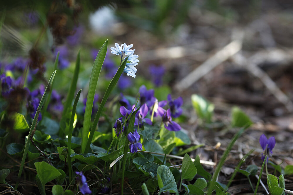 Сегодня покажу палисадник - именно тут собрано все, что цветет рано весной. Мелколуковичные, конечно, просто чудо. Все им нипочем, и мульча, и перекопка, и всякие многолетники сверху, пожалуй, только очень плотный дерн станет им помехой. Они быстро разрастаются, и каждую весну я удивляюсь невероятным бело-голубым полянкам. У меня пушкиния и пролеска в главных ролях, их дополняют фиалка душистая и медуница, а также хионодокса (она, оказывается, вполне себе жива и весела!). И конечно, без нежно-зеленой пены молодой зелени было бы совсем не то. Листайте, тут фиалки... А вот медуница, не зря она сахарная, как будто капельки сиропа на стебельках и цветках... Листайте. А вот и хионодокса. Тоже можно листать. И пушкинии с пролесками. Люблю, когда посадка из равномерной группы луковичек превращается в естественную. Листайте. И еще! Просто невозможно остановиться и не фотографировать... Листайте. В вазон посадила желтолистную мшанку, жду пушистую подушку из нее. Кстати, у пионов видовых красива