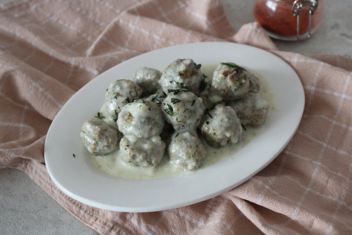 Как только тефтель я не готовила, но вот так еще ни разу. Рецептом поделилась знакомая, с которой мы часто пересекаемся на детской площадке. Рецепт простой, и по весьма универсальный, а получилось просто бесподобно. Тефтели получаются мягкими и сочными, без жарки и с очень вкусным соусом. Фарш подойдет любой, я обычно готовлю из ассорти из свинины и курицы. В чашу блендера отправляем овощи, например лук, брокколи и морковь. Брокколи можно заменить на цветную капусту или кабачок. Все измельчаем и отправляем к фаршу. Туда же отправляем яйцо, соль и специи по вкусу. Фарш хорошо вымешиваем и формируем маленькие колобочки. Укладываем их на противень и отправляем в разогретую до 200 градусов духовку на 30-35 минут. А пока тефтели запекаются занимаемся соусом. Для этого столовую ложку муки слегка обжариваем на сухой сковороде и постепенно добавляем к ней молоко, активно помешивая. Вместо молока можно взять сливки и немного развести их в