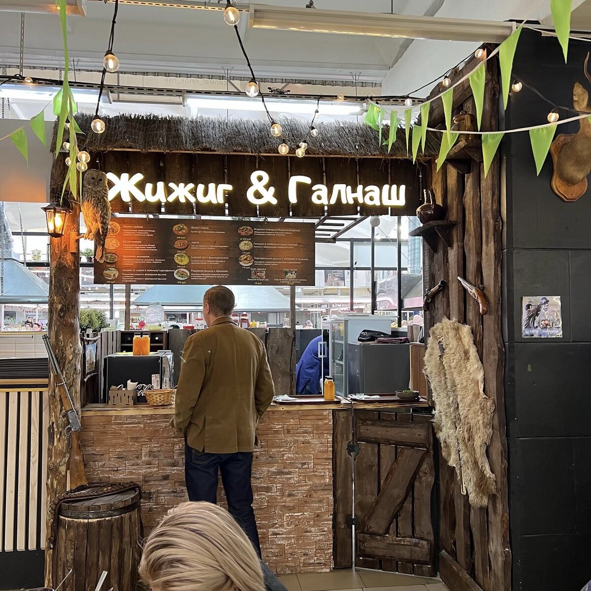 Кафе традиционной вайнахской кухни «Жижиг & Галнаш» открылось недавно на Гастрокорте Центрального рынка. В меню с десяток блюд: котам-галнаш, хычины, жижиг-чорпа. Но тут же присутствует, например, радужная форель с брокколи. Взял заглавное жижиг-галнаш по 249 ₽. Описано в меню как традиционное чеченское блюдо с говядиной и галушками, подаётся с чесночным соусом. Название так и переводится: жижиг — мясо, галнаш — галушки. Блюдо подают на большой тарелке. Причём визуально кажется, что галушек очень много, а мяса — наоборот. На деле оказывается, что мяса не так и мало. Скажу больше – в достатке. Сказать, что мясо разваренное — ничего не сказать. Оно нежнейшее! И разделить кусок можно не прилагая никаких усилий. Что касаемо галушек, на мой вкус, чуть переварили, хотя для большинства это будет оптимальным вариантом. Теперь о том, как следует есть блюдо. Чесночный соус здесь неспроста. Нужно мясо и галушки вместе или по отдельности макать в него и после уже есть. В идеале всё это запивает