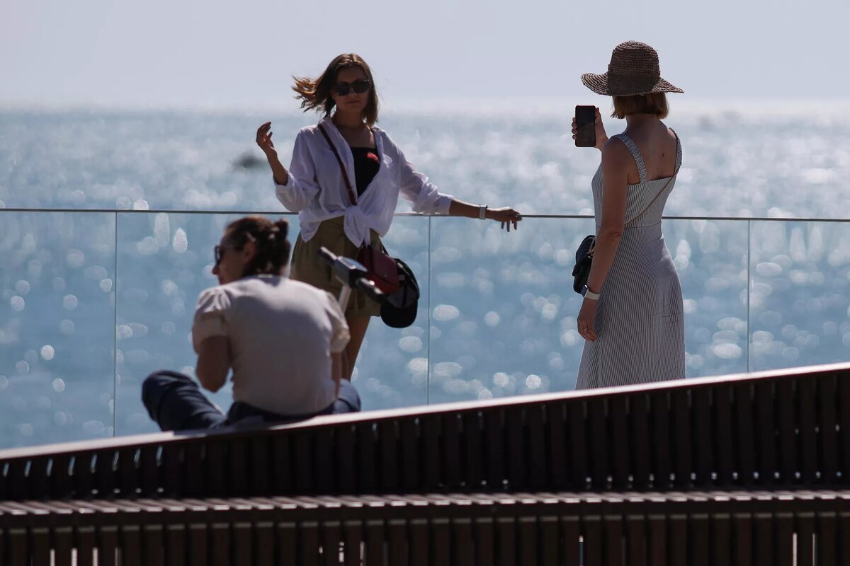 Отдыхающие на территории пляжа санатория "Красная Талка" в Геленджике