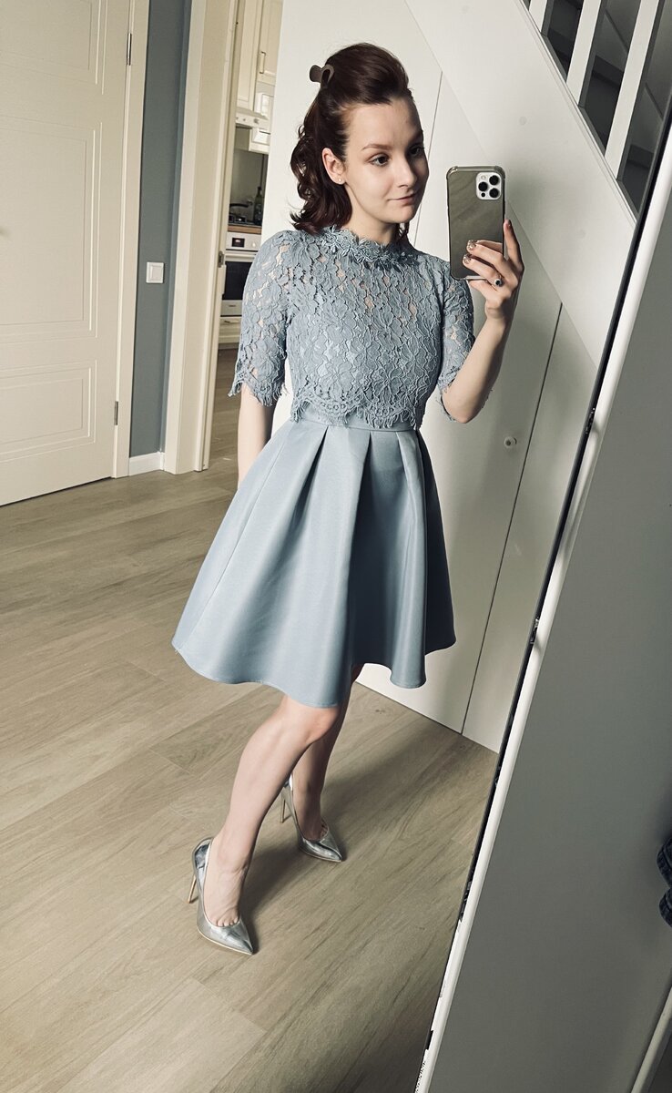 Покупала я его давно через интернет-магазин Asos. Несмотря на то, что здесь, возможно, не самое актуальное кружево на топе, платье до сих пор остается моим любимым, в нем себя чувствую принцессой. Юбка из плотной ткани держит объем.
