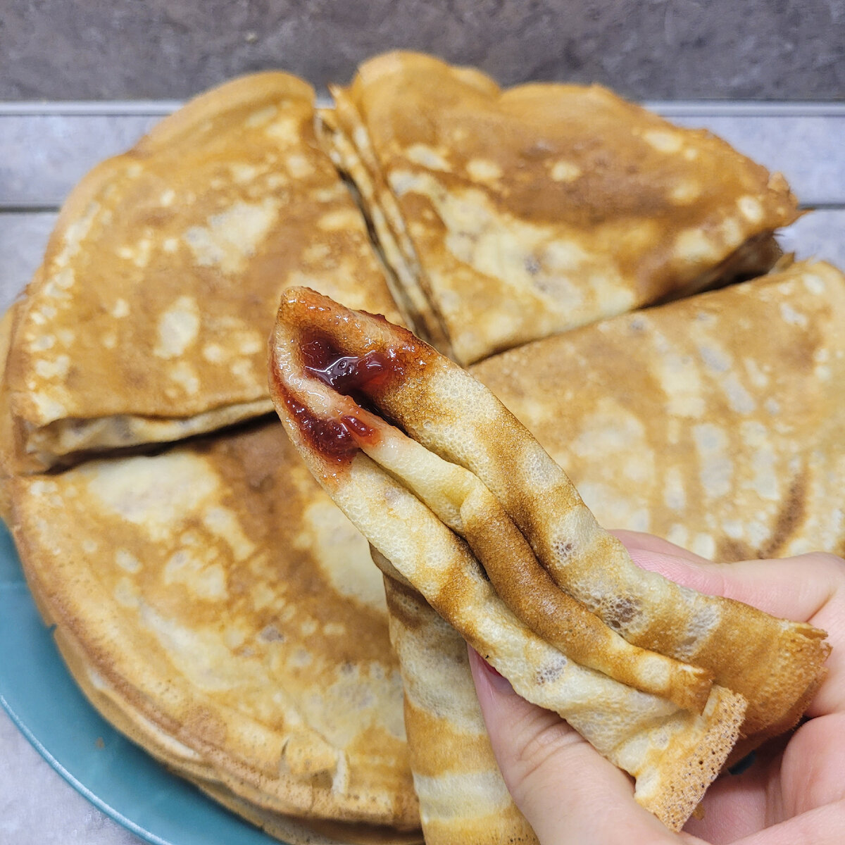 Всем приветик😊 Долго я готовила блины не по тому рецепту, перепробовала много разных и всё не то. Хотелось мягких блинчиков, которые даже после остывания остаются такими))) А получались всегда сухие и хрустящие... И кто бы мог подумать, что добавив кипяток я останусь настолько довольной!!! Ни раз я видела рецепты, где помимо основных ингредиентов, добавляли кипяток и не понимала для чего🤔 да, можно было загуглить, но видимо, не время было мне это узнать 😅😅 Так вот, ребяят, если вы добавляете кипяток и все ингредиенты в верных пропорциях (количество яиц и муки тоже играет роль), то получаете невероятный результат 🤗 И так, к рецепту))) Нам понадобится: 3 яйца 5 ст л сахара 0.5 ч л соли 600 мл молока 320 гр муки 0.5 ч л соды 300 мл кипятка 40 мл растительного масла Приготовим: 🥞 К яйцам добавляем сахар и соль. Хорошо взбиваем венчиком до растворения сахара 🥞 Добавляем сначала 150 мл молока, перемешиваем 🥞 Затем просеиваем сразу всю муку и добавляем соду Всё хорошо перемешал