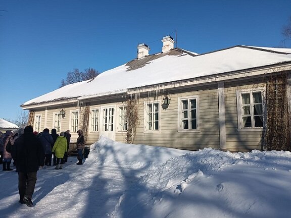 Приветствую тех, кто еще заглядывает на мой канал! Все наслаждаются теплом и солнцем, а я всё еще продолжаю, вернее, заканчиваю свои почти зимние репортажи с начала весны. Сегодня, наконец, пишу о последнем дне моей экскурсии по Северо-Западной Руси. Он полностью был посвящен посещению музея-заповедника "Пушкинские горы". Надо сказать, что для меня в этой поездке была значительная нотка ностальгии: когда-то, еще в школьные годы, экскурсия в эти места была моей первой дальней автобусной поездкой и первым опытом ночевки в гостинице. Тогда нам посчастливилось увидеть самого знаменитого С.С.Гейченко, создателя и долгие годы хранителя Пушкиногорья. Помнится, он даже оставил нам свой автограф. Увы, ни фотографии, ни книги с тем автографом у меня не сохранились, только ностальгическое воспоминание в душе. В музей входит три усадьбы, связанные с именем А.С.Пушкина - Михайловское, Тригорское и Петровское, а также Святогорский монастырь, где находится могила поэта. Михайловское - это фамильно