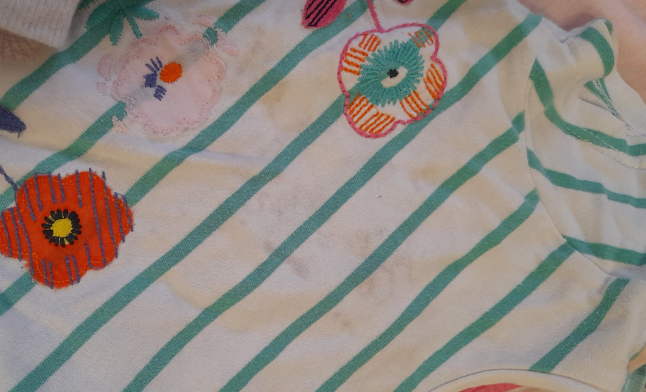 А тут представился подходящий случай: сразу вспомнила про пятна, которые непонятно как появились, и ничего их «не брало». Такое часто бывает, особенно на детских вещах: