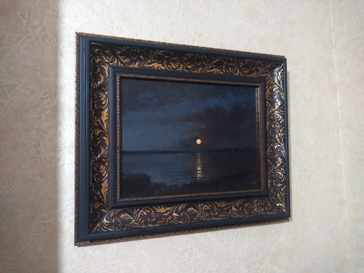 На фото конечно картинка засвечена, и луна кажется белой, но на самом деле я УВИДЕЛ основных 4 состояния луны в ночном небе: 1) Когда только-только появляется из-за горизонта - красная. 2) В промежутке как на картине - желтая. 3) Чуть ниже - оранжевая. 4) А когда высоко в небе - зеленая... Но все эти цвета должны быть холодными... Так же есть отдельные нюансы и в лунной дорожке, и в гало вокруг лунного диска... Много нюансов на самом деле... Да, на самом деле, в ночном небе СТОЛЬКО МНОГО интересных оттенков цвета! И каждый день цвета разные!