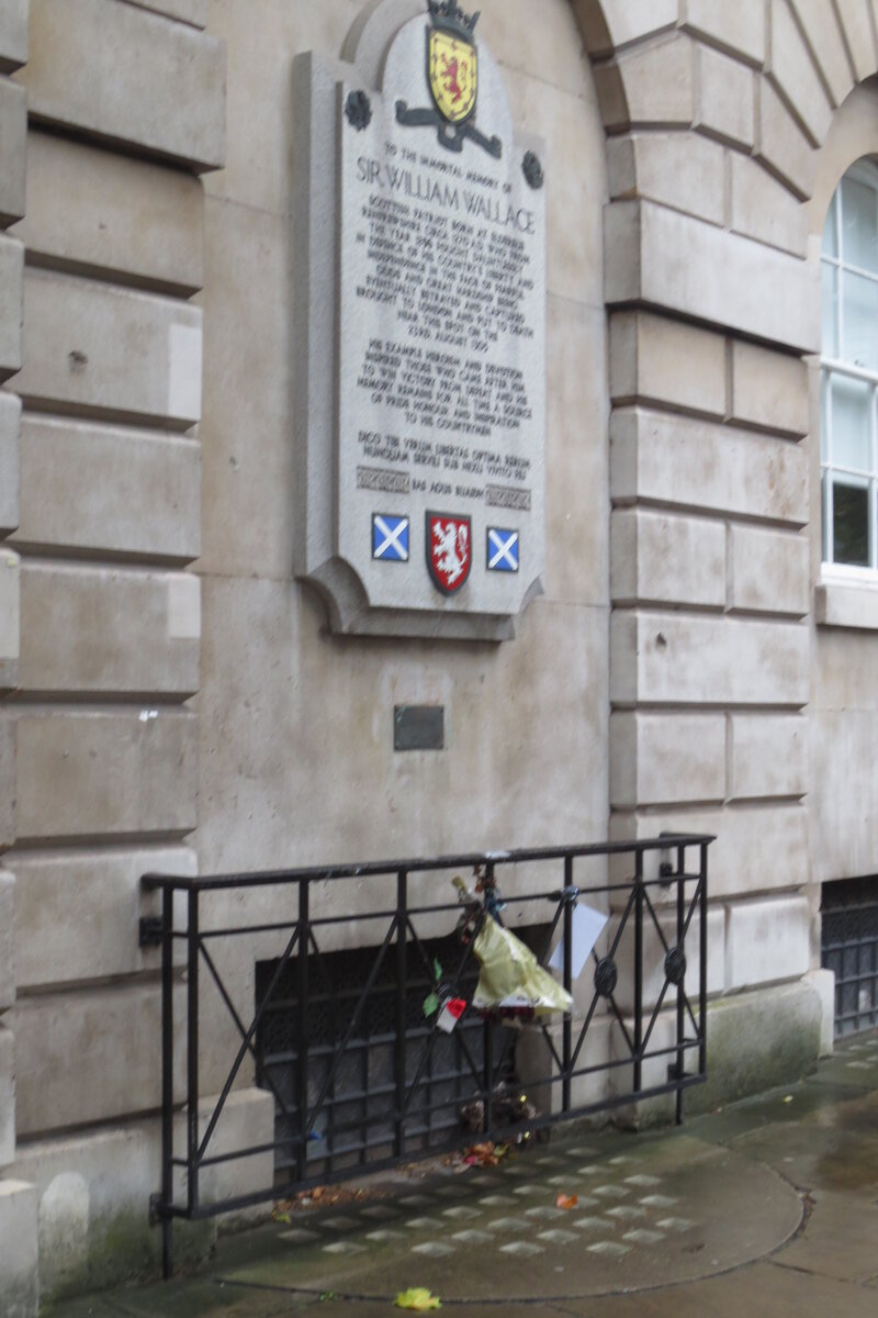 Сразу нашлась мемориальная доска в память об Уильяме Уолласе – шотландском национальном герое, казнённом здесь 23 августа 1305 г. (сейчас обнаружила, что посетила это место за два дня до годовщины трагического события).