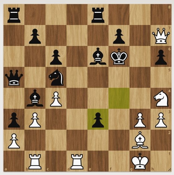 Черные имеют лишнего слона. Белые начинают и ставят мат в 3 хода. Подпишитесь на канал и будут новые интересные задачи. Решение смотрите далее. 1. Белые бьют пешку на "h6". 1. .................................. черные отходят королем (другие варианты пишите в комментариях). 2. Белые дают шах конем. 2. .............................. черные бьют коня слоном. 3. Белые ставят мат на "d6". Следующая задача тут