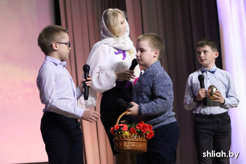 23 апреля в Сморгонском районном Центре культуры прошёл праздничный концерт. Учащиеся Воскресной школы поздравили всех собравшихся в зале со светлым праздником Воскресения Христова. Дети пели песни, читали стихи, танцевали, показывали театральные постановки. Этот концерт был наполнен самыми лучшими чувствами. У каждого зрителя была особая возможность побыть в праздничной атмосфере торжества, где юные артисты славили Христа, который пришёл в наш мир Спасителем. Настоятель собора Преображения Господня протоиерей Анатолий Резанович вручил подарки победителям номинаций «Пасха – семейный праздник», «Пасхальный кулич», «Пасхальное яйцо», «Пасха – праздников праздник», поблагодарил всех, кто пришел на концерт, преподавательский состав, подготовивший праздничное представление, юных артистов. Дети читали пасхальные стихи и получали из рук Анатолия Резановича сладкое угощение.
