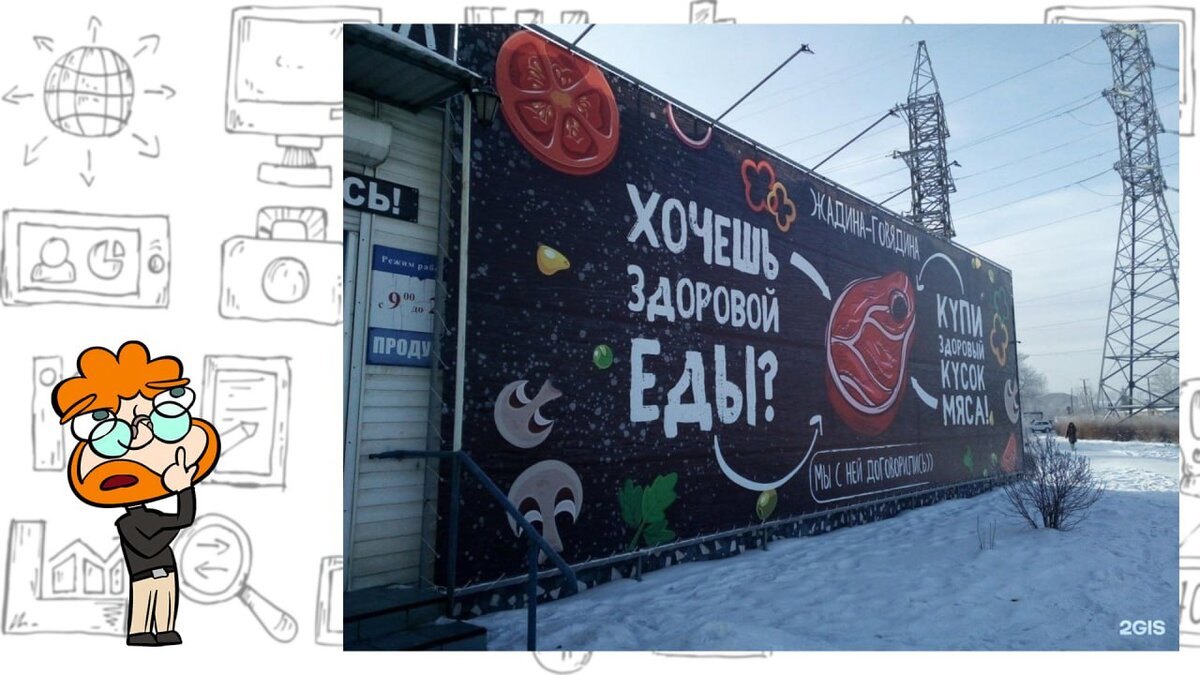 Привет, дорогой друг! Знаешь, мне всегда нравилась реклама. Она может быть креативной, смешной и запоминающейся. А есть особый жанр — русская реклама. Вот её мы и рассмотрим в новом выпуске. Поехали! Русский маркетолог способен договориться даже с коровой. Вот эту замечательную суперспособность и вынесли на билборд. Интересно, а с какими животными наши маркетологи также могут прийти к такому соглашению? Дайте маркетологу поверхность и он из нее сделает рекламную площадь. Зачем заморачиваться с согласованиями, законом о рекламе и прочими вопросами. Есть же пара свободных часов у каменотеса. Русский маркетинг умеет в тренды. Вот там за океаном разработали ИИ-алгоритмы, а у нас уже придумали как ими воспользоваться во благо налоговой отчетности ИП с ОКВЭДом на шаверму. Русский маркетинг находится в авангарде рынка услуг. Слышали про репетиторов, слышали про мужа на час. А вот и философ. Прикольно, когда можно нанять человека для объяснения принципов софистики. Только зачем? Ну это уже дру