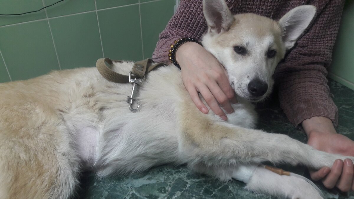 Да, бывает и так... Щенуля была подобрана на дороге г.Краснокамска после ДТП, благо легко отделалась, быстро оправилась и уж было собиралась ехать домой, но пока не вышло. Вчера утром рано у Лаймы началась рв0та, сначала пеной, потом выпитой водой с неприятным запахом. Еще вечером предыдущего дня, казалось бы, все было хорошо: собачуха хорошо кушала, играла, прыгала, скакала в предвкушении поездки домой. Утром наотрез отказалась кушать и мы поехали в ветклинику потому как такое резкое ухудшение состояния ничем хорошим без обследования и лечения не закончится. Ветврачи взяли у нее два ан@лиза, м@зок, прок@пали, поставили противорв0тное и @нтибиотик. По ОАК не все плохо, кроме одного показателя. Тест пока делать не стали до получения БАК. Завтра мы получим остальные результаты и, надеемся, станет понятно что с Лаймой произошло. Предварительно: Понятно, что такого резкого ухудшения здоровья молодой и энергичной собачки никто не ожидал соответственно к такому повороту событий не были го