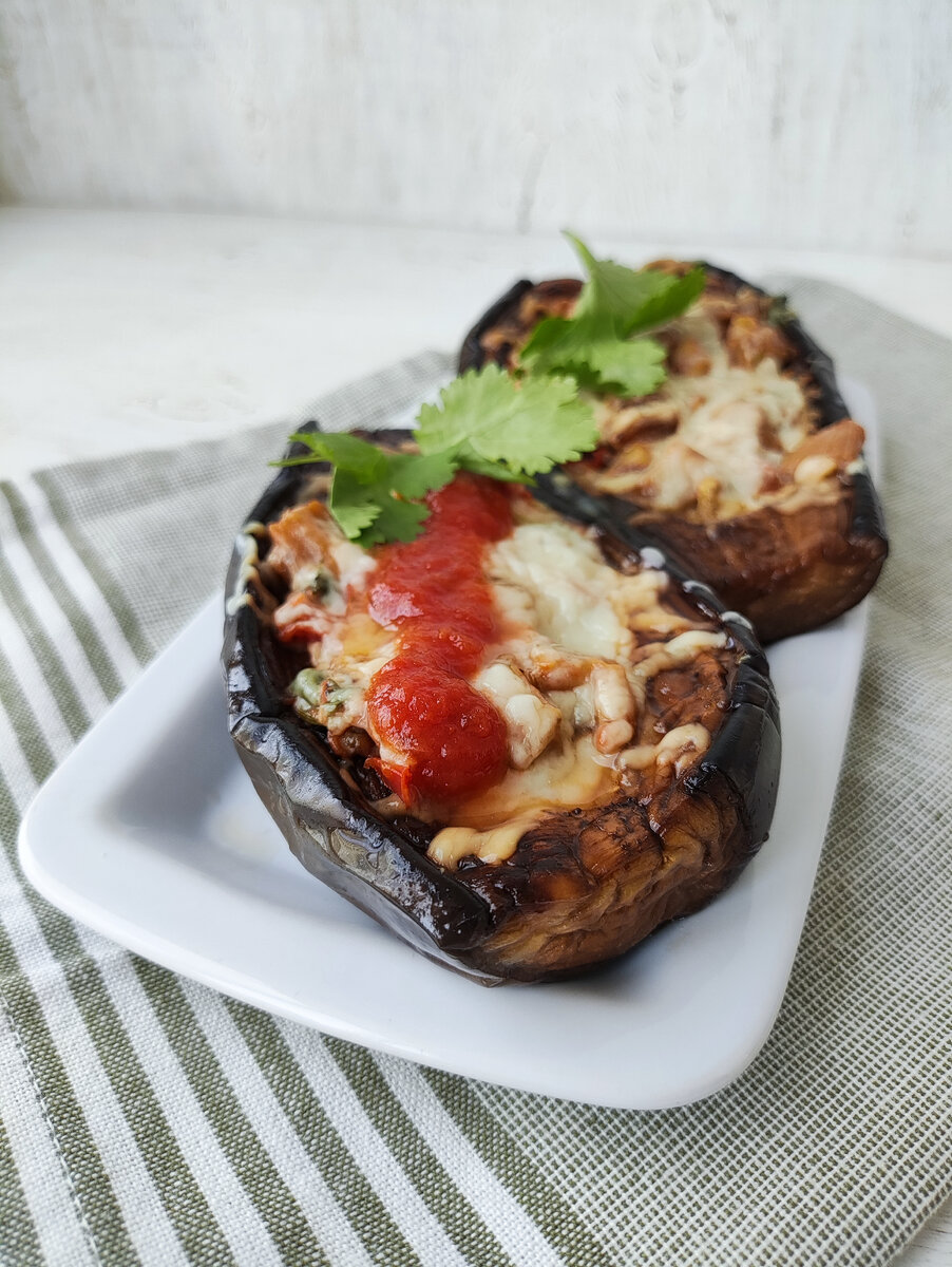 Всем доброго дня! Прошлые недели выдались напряжёнными, сюда давненько не заглядывала. Но буду исправляться))) Весна идёт полным ходом, температуры за окном радуют, на столе хочется видеть всё больше и больше овощей. Приготовим сегодня баклажаны. Сочные, овощные, вкусные синенькие. Рецепт рассчитан на 4 порции Ингредиенты: Приготовление: 1. Баклажаны промыть, разрезать вдоль, посыпать солью и сахаром и оставить минут на 20. Мякоть баклажана снять ложкой. Баклажаны промыть, обсушить и обжарить на небольшом количестве масла слегка с двух сторон. Пропитать лишнее масло салфеткой. 2. Лук, перец нашинковать мелкой соломкой, чеснок порубить и обжарить пять минут на сковороде. Добавить мякоть баклажана, нарезанные кубиками помидоры, зелень, посолить и тушить минут 5-7. 3. Овощи выложить на баклажаны, сверху посыпать сыром и запекать при 150 ° до готовности (минут 15) Для соуса: Приготовим соус, для этого лук нарезать соломкой, помидоры ошпарить кипятком и снять кожуру, мякоть помид