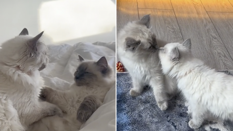 Котенка породы рэгдолл новые хозяева забрали из питомника, но, несмотря на то что у него появилась семья и дом, он все равно чувствовал себя одиноким. Решение нашлось практически сразу. Посмотрите это милое видео, сразу все поймете. Крошечный Вулф выглядел таким несчастным, когда приехал домой, что хозяева поняли — ему чего-то не хватает. Или кого-то. Оказалось, что в питомнике у малыша остался любимый друг, по которому он уже успел соскучиться. Спустя 3 дня хозяева приняли решение воссоединить разлученных котят. Винтер, хвостатый друг Вулфа, также стал частью семьи. Встреча малышей настолько трогательная, что мы не можем сдержать улыбки. Привязанность котят друг к другу во многом обусловлена особенностями породы — рэгдоллы очень нежные кошки, они следуют за любимыми (в том числе хозяевами) повсюду. Малыши нуждались друг в друге, и мы очень рады, что хозяева смогли взять в семью обоих котят.