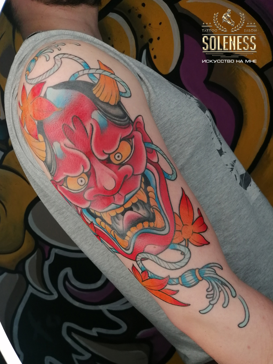 Татуировки с изображением японского демона обычно делаются на спине, груди, руках или ногах. Они воплощают в себе силу, агрессивность, решимость и смелость, поэтому эти татуировки часто выбирают мужчины.