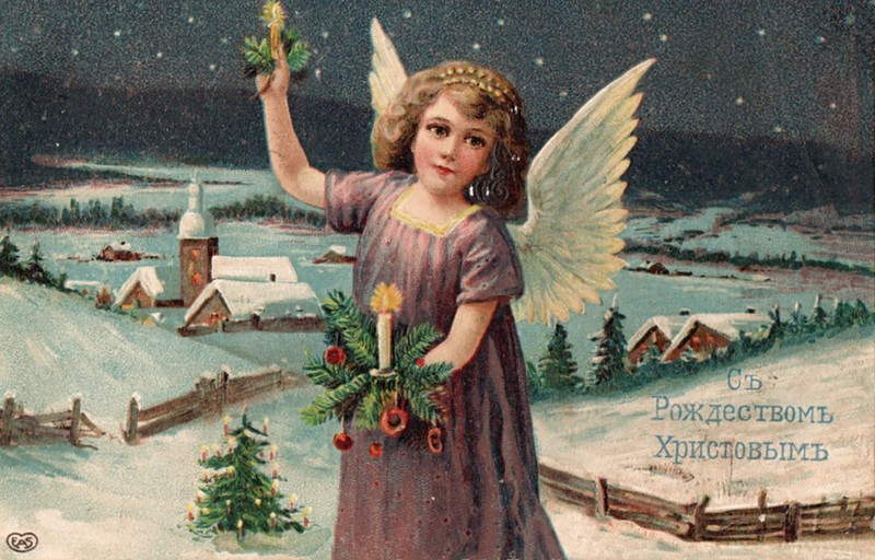Зимние праздники несут не только ощущение чуда, но и имеют узнаваемые образы, которые невозможно спутать ни с чем другим. Младенец Христос в яслях - образ Рождества, Дед Мороз - грядущего нового года. Но на рождественских изображениях - картинах или открытках - мы часто видим Марию, Иосифа, волхвов, пастухов, вола, ослика, овечек. И ангелов. Много красивых ангелов можно увидеть на дореволюционных открытках. Это ангелы-музыканты, ангелы-созерцатели и ангелочки, которые кружатся на яслями в вифлеемской пещере. Можно найти изображения ангелов, дарящих детям подарки на Рождество и ангелов, поющих и славящих Христа. Иногда их изображали детьми, но чаще - с прекрасным юными лицами. В Российской империи были популярны немецкие и английские открытки, поэтому их продавалось и покупалось тоже достаточно много. Звездная ночь, хвойные веточки, золотой огонек свечи - все эти открытки невероятно хороши. Дело даже не в каких-то великих художественных достоинствах, просто они дарят радость А вот сканд