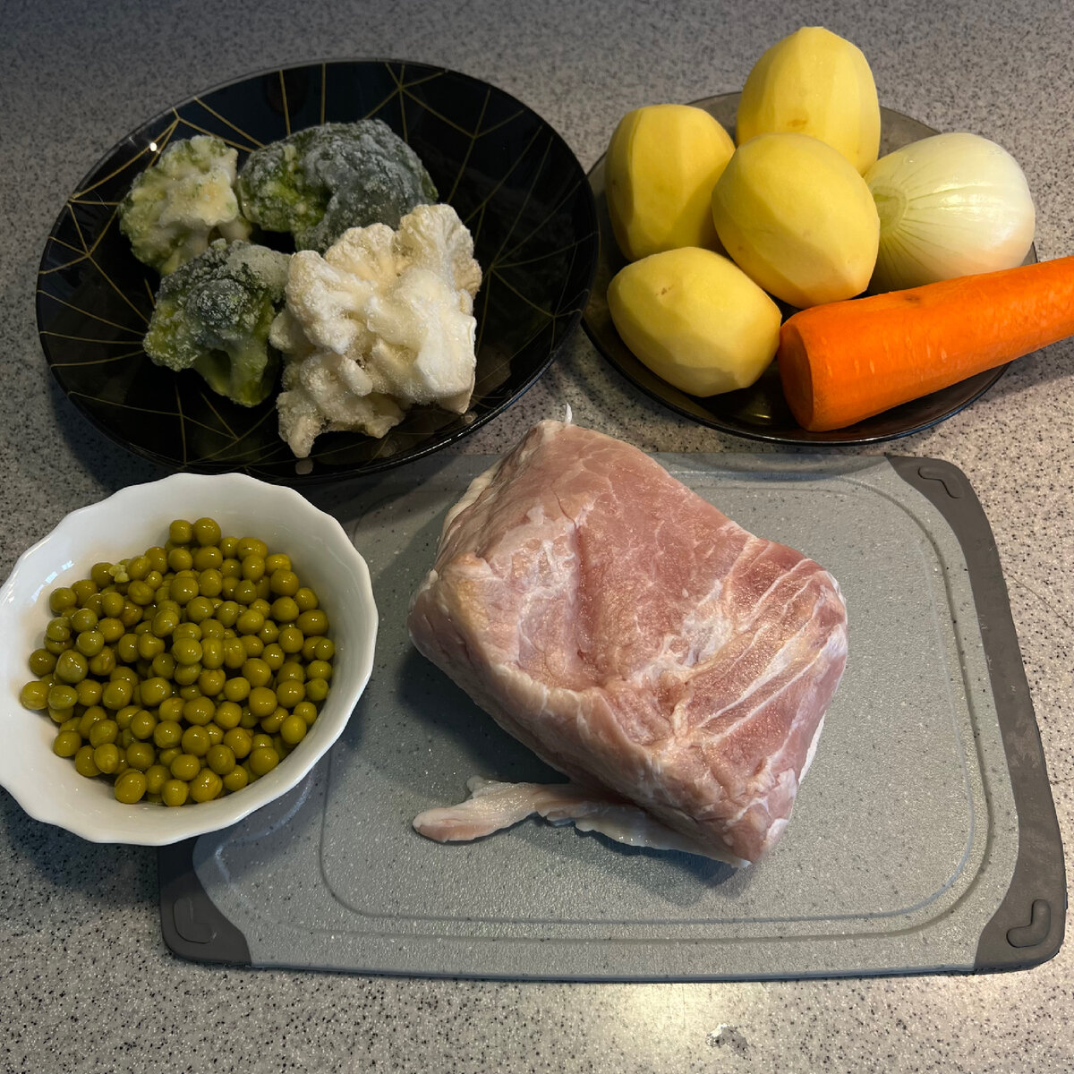 - любые овощи (у меня замороженные броколли, цветная капуста и полбанки горошка)
