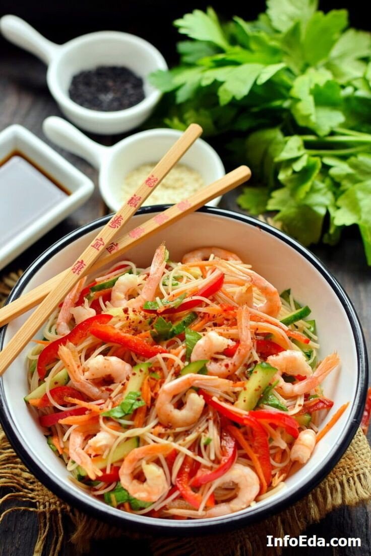 Фунчоза – это традиционное блюдо китайской кухни, которое стало популярным и в других странах Азии, в том числе в Японии, Корее и Таиланде. Это блюдо готовят из прозрачных стеклянных нитей, которые известны как фунчоза или мунговые лапши. Они не имеют собственного вкуса и аромата, но легко впитывают в себя вкус и аромат других ингредиентов, которые добавляются в блюдо. Если вы хотите приготовить фунчозу дома, вам понадобятся следующие ингредиенты и рецепт. Ингредиенты: - пару креветок - 200 г фунчозы - 1 морковь - 1 красный перец - 1 лук-шалот - 2 зубчика чеснока - 2 столовые ложки растительного масла - 2 столовые ложки соевого соуса - 1 столовая ложка рисового уксуса - 1 столовая ложка сахара - 1 чайная ложка куркумы - соль и перец по вкусу - свежая зелень для украшения Рецепт: 1. Подготовьте фунчозу, залейте ее кипятком на 5 минут, затем откиньте на дуршлаг и оставьте ее на несколько минут, чтобы лишняя вода стекла. 2. Нарежьте морковь, перец, лук-шалот и чеснок мелкими кубиками. 3.