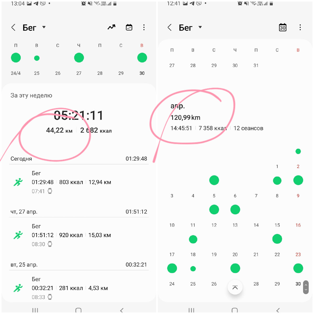 Хочется сделать какую-то остановку, засечку, заметку, потому что поток так стремительно несет, что практически не остается времени не то что на анализ, на простую подборку данных.🏇 В этом месяце получился хороший объем в 120 км, причем 44 из них за последнюю неделю😁. Были горы, были танцы, были медальки, были творческие успехи и неудачи. Что-то шло по плану, а что-то никак в него не вписывалось, но в целом апрель принес больше радостей, чем печалей, главное – была возможность и силы находить воздух и свет меж всем-всем-всем. Чего и всем желаю! И, конечно, мир, труд, май, товарищи! 💙НВ🤍