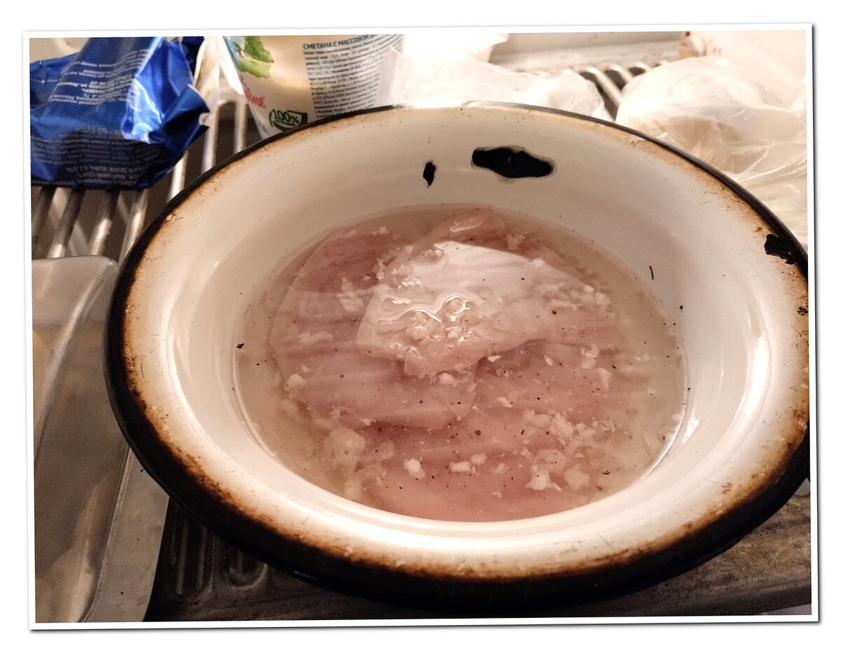 Меня тут просили показать, как я использую мой новый кухонный молоток, который я купил пару дней назад. Вот, показываю. Это готовое куриное филе маринуется в холодильнике. Сам процесс отбития молотком сфоткать забыл. Просто холодная вода с измельчённым чесноком. Кусочки филе предварительно натёр смесью соли и перца. Поставил мариноваться в 7 утра, к обеду было готово. Потом в одну миску - пару ложек муки, в другую миску - одно яйцо. Кусочки филе сначала обвалял в муке, потом в яйце, и на горячую сковороду с растительным маслом. Несколько раз переворачиваю. На гарнир ничего сложного делать не стал, просто сварил две картофелины. И так нормально. Серая лежит на батарее и делает вид, будто всё это её нисколечки не интересует. Ну прямо никак! И пахнет совсем невкусно! :) Один кусочек филе ещё остался, заныкал его в контейнер. Завтра будет, чем поужинать.