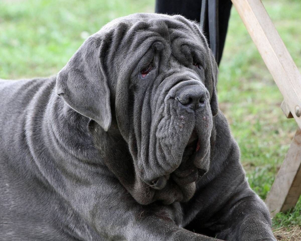 Величественная и мощная - это мастино наполитано. Также их называют итальянскими или неаполитанскими мастифами. В холке собака достигает 75 см, и весить может до 70 кг. Окраска бывает коричневая, серая, палевая, серо-голубая, ореховая и "изабелла". Свой род наполитано ведёт от молосских собак. До 2 мировой войны эта порода была весьма распространена, но потом почти исчезла. В Италии двум заводчика все же удалось найти самца и самку, которые и стали родоначальниками современных итальянских мастифов. Выглядит мастино, мягко говоря, угрожающе. Но это абсолютно противоречит их характеру. Собака абсолютно спокойна и рассудительна, если конечно не забывать о правильном воспитании и дрессировке. Мастино дружелюбен ко всем членам семьи, но хозяин у него все же один. Собака с удовольствием поиграется с ребёнком, а вот других собак не жалует. Порой даже своей же породы противоположного пола. А вот с кошками, как ни удивительно, уживется неплохо. Самый увесистый в мире мастино по кличке Геркулес
