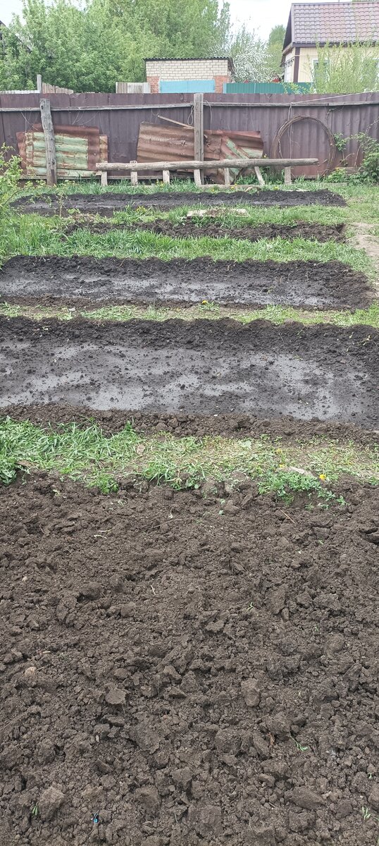 Только недавно у одного блогера на слуху читала, что невозможно сделать грядки там, где трава по колено и сто лет не копано😂. Оказалось - возможно). Там где был загон, действительно никто ничего не сажал, сколько я здесь живу). Всегда были заросли осоки, пырея и крапивы). А когда половинку купили мы, то сделали там для мелкого загон, чтобы по грядкам не топтался). Дима ещё огораживал).
