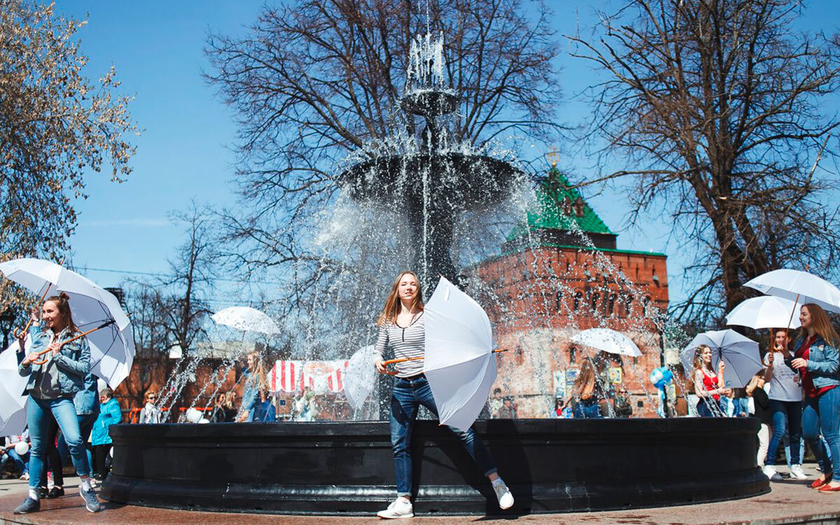 В Нижнем Новгороде к сегодняшнему дню заработали все фонтаны. Каждый год это знаковое событие, которое начинается с торжественного запуска фонтана на площади Минина и Пожарского.