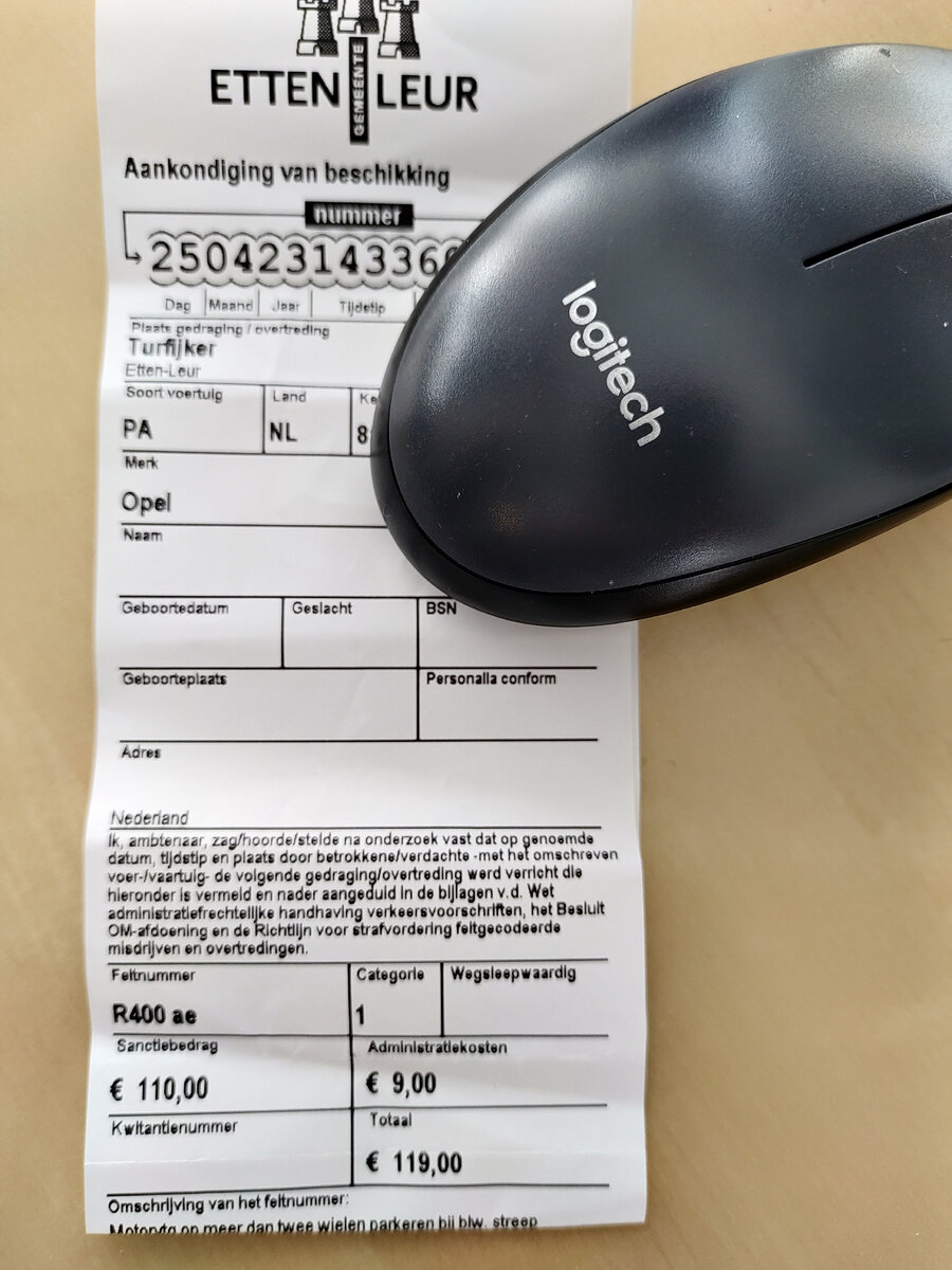 Блин, съездили в магазин называется. Всегда ездили в Эттен в супермаркет, а тут меня что-то торкнуло, говорю: "А поехали в Лёр. Закупимся, ты поедешь домой, а я по окресностям Лёра побегаю, а то в Эттене я уже каждую подворотню знаю". Ну и поехали, прихожу домой, муж говорит: "Гля, чё у меня есть- сюрприз от магазина" и показывает чек: штраф 119 евро. А все потому , что парковка перед супермаркетом условно-бесплатная. То есть можно стоять бесплатно максимум 2 часа. Только нужно положить на видное место синенькую карточку, на которой колесиком устанавливаешь время когда ты запарковался. А муж карточку не положил и получил привет от муниципалитета. С парковками в Нидерландах нужно держать ухо востро- нужно смотреть что написано на знаке. Бесплатных парковок очень мало. Есть парковки где платить нужно в любое время суток. Оплачивать парковку можно в терминале, а можно через приложение в мобильнике. Есть парковки где расписано: в такие дни платно со стольки до стольки. Если под буквой Р