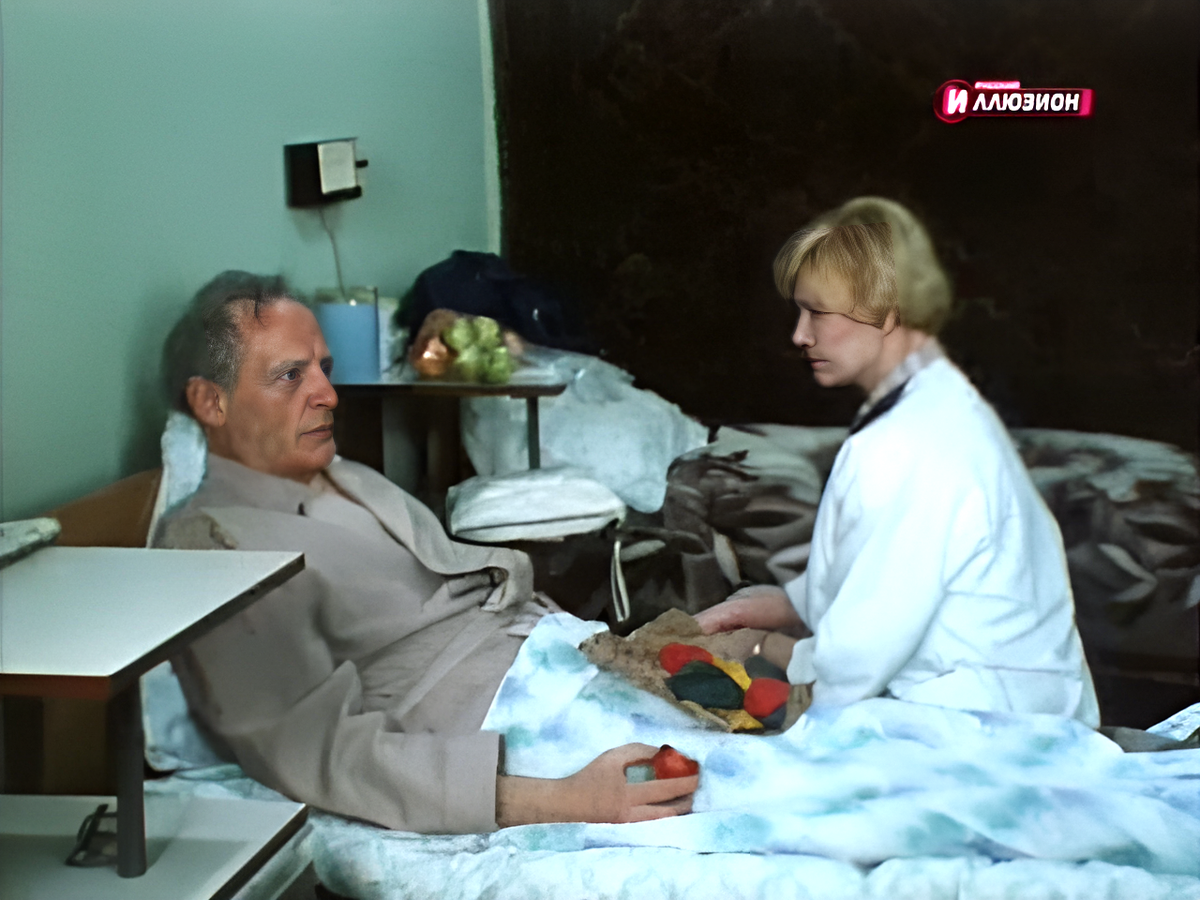И для "полноты коллекции", как "мэр" ни сопротивлялся, Антонина познакомила его с четвертым своим начальником. С ним она молоденькой девчонкой начинала. Тимофей Егорович Ползунов, фронтовик, он отстроил город по кирпичку после войны. Ему уже под 80 и последнее его пристанище в доме-интернате для престарелых и инвалидов, который он, кстати, и построил. Как скажет Антонина нынешнему "мэру": "Этот интернат для себя выходит построил, а нынешние себе дачи возводят." И лежит умирающий Тимофей Егорыч в общей палате на 6 человек, и только верная Антонина пару раз в месяц его навещает.