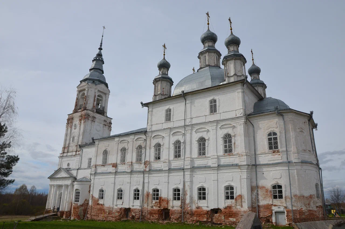 Мы ехали в город Сокол в Вологодской области. По дороге углядела купола в стороне, храм показался мне красивым и изящным, попросила мужа подъехать.