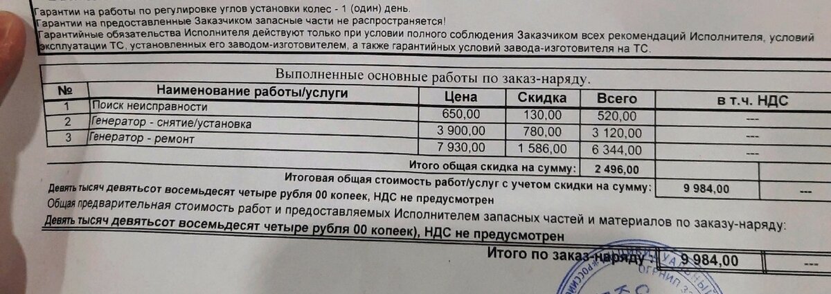 Всем привет, апрель - официальный месяц трат на машину. Обо всем по порядку. Поломка генератора 7 апреля. Никого не трогаю. Работаю. Заказы прут. Был записан на 16:30 на промывку форсунок. Но Дуська решила иначе. На крайнем заказе загорается индикатор "аккумулятора". Ну и не долгими размышлениями понял, что это генератор. Поехал в сервис пораньше, сдал машину, начал ждать ценник. Итоговая цена с ремонтом генератора вышла - 9984 рубля. Новый покупать не стал. Во-первых, ждать Старвольтовский через автодок - 3 дня. Во-вторых, цена - 12000 рублей. Вот такие вещицы из генератора мне отдали. Не знаю на сколько ужасны. Но по мне так, понятно почему генератор сдох. Следующая проблема. Покупка резины Взял вот такую резину. По цене брал 5200. Сейчас подорожали. Брал одну штучку, т.к. в прошлом году полетела одна шина, либо из-за самореза, либо из-за пореза... В общем и целом, прошлое лето катал на запаске, от которой машину таскало в разные стороны. Промывка форсунок 19 апреля