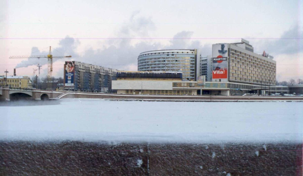 Первое фото - гостиница «Санкт-Петербург» и Пироговская набережная в конце 1990-х годов. Уже построили бизнес-центр «Петровский форт», но ЖК «Монблан» и "Аврора" пока ещё отсутствуют. Теперь здесь так. Практически каждое строение здесь официально признано градостроительной ошибкой, вот только кому от этого признания легче? Перенесёмся на набережную Обводного канала в 1998 год. Вернее, набережной, как таковой, тогда ещё н