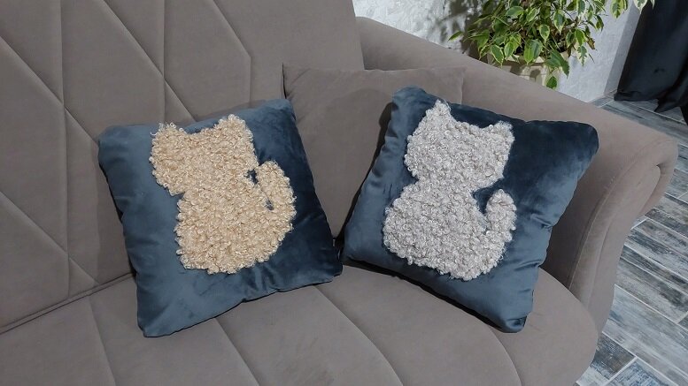 Наконец-то сшились у меня шторы в спальню и от них остались обрезки, а так как ткань очень приятная на ощупь, бархат-блэкаут, то я решила, что диванные подушки из этой ткани получатся хорошие, украсить же их решила аппликацией в виде - котейки. Размер подушки в готовом виде 45 см на 45 см, закрывается сзади на молнию, а наполнена синтепухом. Для самой аппликации я использовала ткань из которой шьют верхнюю одежду, ворс-кудряшки довольно длинный и очень приятный, такой мягонький, были у меня кусочки двух цветов и я решила их использовать, хоть правда и не бывает кудрявых котов, но получилось забавно)))))) А Вы как думаете? Шаблон прорисован на листе формата А4, если Вам не нравится этот рисунок, то можно в Интернете поискать другие варианты котов и кошечек. Очень интересно Ваше мнение - сложно сшить такие подушки или нет? Диванные подушки-монстрики, они бывают страшные, а бывают забавные. Вам какие больше нравятся? Идеи для воплощения. Диванные подушки с котиками! Идеи для воплощения. Ш