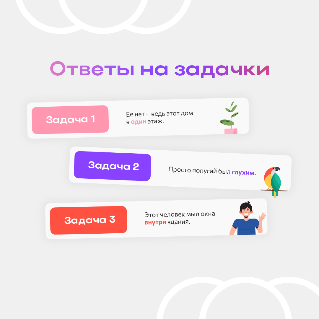 Друзья, недавно мы выкладывали задачки (нажмите и увидите пост). Хотите узнать правильные ответы? Мы их опубликовали ниже.