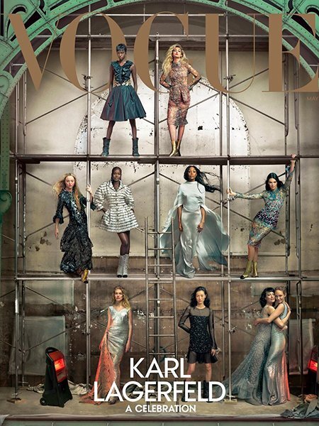Десять моделей, десять дизайнеров, один культовый фотограф и знаменитая кошка собрались вместе в парижском Большом дворце для съемки обложки майского выпуска Vogue. Он посвящен Карлу Лагерфельду и подготовке к балу Met Gala, дресс-код которого в этот раз сформулирован просто — в честь Карла. На обложке предстали любимицы модельера: Кендалл Дженнер, Джиджи Хадид, Наталья Водянова, Наоми Кэмпбелл, Эмбер Валлетта, Анок Яй, Шалом Харлоу, Лю Вэнь, Адут Акеч и Девон Аоки. И да, место, где прошли съемки, в настоящее время находится в процессе глобальной реставрации, но ни одна модель не пострадала, хотя все они были без касок, в отличие от команды бэкстейджа. На строительные леса фотограф Энни Лейбовиц также никого не «поднимала»: поставила отдельную мини-декорацию и снимала в ней девушек поодиночке, а потом с помощью искусства фотошопа объединила всех в общий снимок. На каждой модели — новые шедевры от десяти дизайнеров: Джона Гальяно для Maison Margiela, Донателлы Версаче, Пьерпаоло Пиччоли