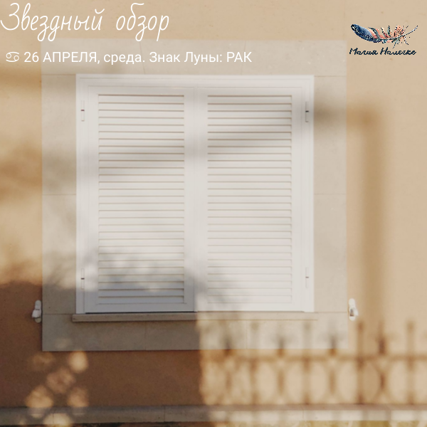 Доброй среды! ♋ 26 АПРЕЛЯ, среда. Знак Луны: РАК Тренды дня: Продолжается череда на этой неделе очень деятельных дней. Меркурий набирает скорость в своей петле и наши дела с ним по тихоньку сдвигаются с мертвой точки. Его ретроградность никак не отменяет обычной жизни, просто призывает к большей внимательности и возврату ситуаций из прошлого. Продолжаем упорствовать в своих целях и работать в теме личных изменений. Луна сегодня в секстиле с Меркурием и Ураном, и в соединении с Марсом, что может подкинуть нам неожиданные решения старых вопросов, новые оригинальные идеи. Выходя из дома не забываем сачок для этих идей! Сегодня все еще удачное время для обращения к старым вопросам, которые касаются семьи, дома, участков, отношений с родными. Тема семьи и родственников просто будет витать в нашем пространстве. Вторая половина дня более наполнена эмоциями, и уже сложнее будет принимать адекватные решения. Но мы пробуем и не сдаемся. Есть вероятность, что вы можете принять желаемое за дейст