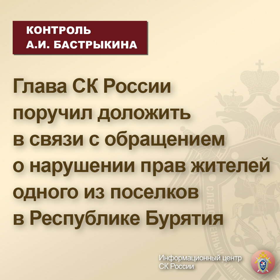 Председатель Следственного комитета Российской Федерации Александр Иванович Бастрыкин поручил руководителю СУ СК России по Республике Бурятия Вячеславу Викторовичу Сухорукову доложить о ситуации, а также об основаниях принятого решения об отказе в возбуждении уголовного дела.