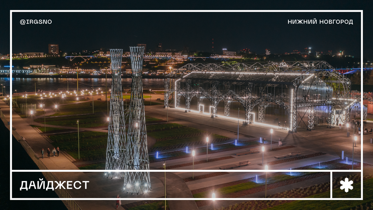 Как менялась площадь Маркина? Рассказали об истории её становления в карточках — от 19 века до благоустройства по концепции ИРГСНО в 2020 году. Пакгаузы и Шуховские башни на Стрелке — номинанты премии «Золотое сечение»! Башни, появившиеся на Стрелке в рамках ее активации по концепции ИРГСНО, удостоились своей первой награды. Для Пакгаузов это уже восьмая премия менее, чем за год с момента открытия Стрелки и павильонов. Побывали на Дне креативного лидерства в академии Маяк В рамках сессии, руководитель ИРГСНО Дарья Шорина стала спикером в панельной дискуссии, а руководитель отдела внешних коммуникаций Дима Четыре в рамках этой же сессии выступил с рассказом на тему дизайна городской среды. К другим новостям: Эскизы станций канатной дороги через Оку представили архитектурному совету Планируемая протяженность маршрута канатной дороги 3340 метров, 15 минут в пути и пассажиропоток в 10000 человек в сутки. Построить канатку планируется к 2025 году. В Арзамасе активно идут работы в рамках кла