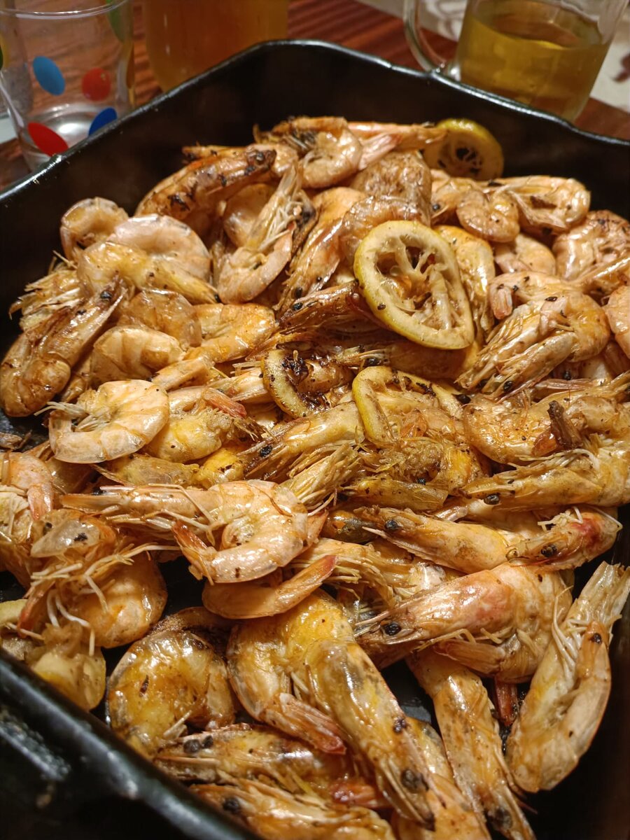 Для приготовления такого деликатеса нам потребуется : ~ Креветки королевские - 2 кг ~ Лимон 4 шт. ~ специе по вкусу Сначала, вскипятить воду. Затем закидываем креветки и варим 10-12 минут. После варки выкладываем их в друшлак, чтобы стекла вода. Разогреваем сковороду и заливаем подсолнечное масло (можно и на оливковом). Лимон режем дольками. Закидываем в сковороду креветок без горки, это где-то 500-700 грамм. Сверху на креветки кладём 4-5 долек лимона и посыпаем специями по вкусу. Буквально пару минут обжарить и перемешать. Продолжаем жарить всего лишь 10-15 минут. После, выкладываем на тарелку и можно добавить дольку лимона для украшения.